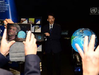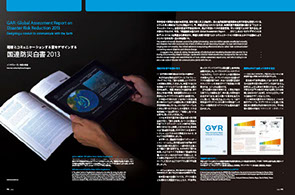 『国連防災白書』デジタル版を「触れる地球」システムをベースに構築する委託業務をジュ ネーブ国連本部UNISDR(現UNDRR)より受け、タブレット版「触れる地球」GfTシステムを開発。紙媒 体の『国連防災白書』にもAR機能を搭載するなど新機軸を企画実装。(以後2018年まで『国連防災白 書』デジタルの制作とプラットフォーム提供を受託)